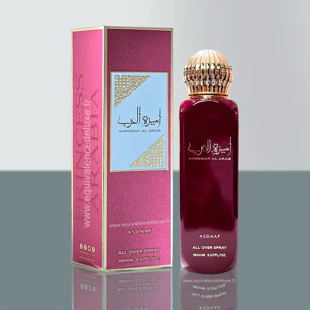 Ammerat Al Arab – All Over Spray 150ml de Asdaaf est une brume parfumée inspirée de l’univers oriental moderne. Légère mais longue tenue, elle enveloppe le corps, les cheveux et les vêtements d’un parfum doux, propre et élégant, typique des fragrances de Dubaï. Parfaite pour un usage quotidien.