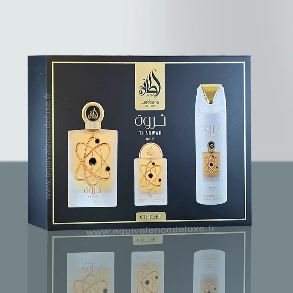 Présentation du Coffret Tharwah Gold – Lattafa Pride