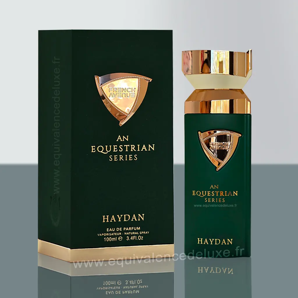 Sur les forums et communautés parfum, Haydan est souvent cité comme un dupe / parfum inspiré / équivalent d’un grand parfum boisé aromatique de la parfumerie de niche. Il en reprend l’esprit : fraîcheur herbacée, cœur chaud safran-praline, base boisée cuirée et profonde. Équivalence de Luxe propose ainsi une alternative accessible, tout en respectant l’univers olfactif original. Aucune marque tierce n’est affiliée à ce produit.