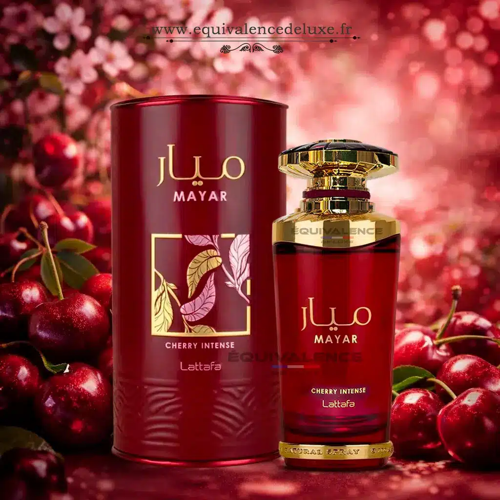 Mayar Cherry de Lattafa est un parfum féminin gourmand et sensuel, dominé par une cerise sucrée et juteuse, associée à des notes vanillées et chaleureuses. Une fragrance intense, moderne et addictive.