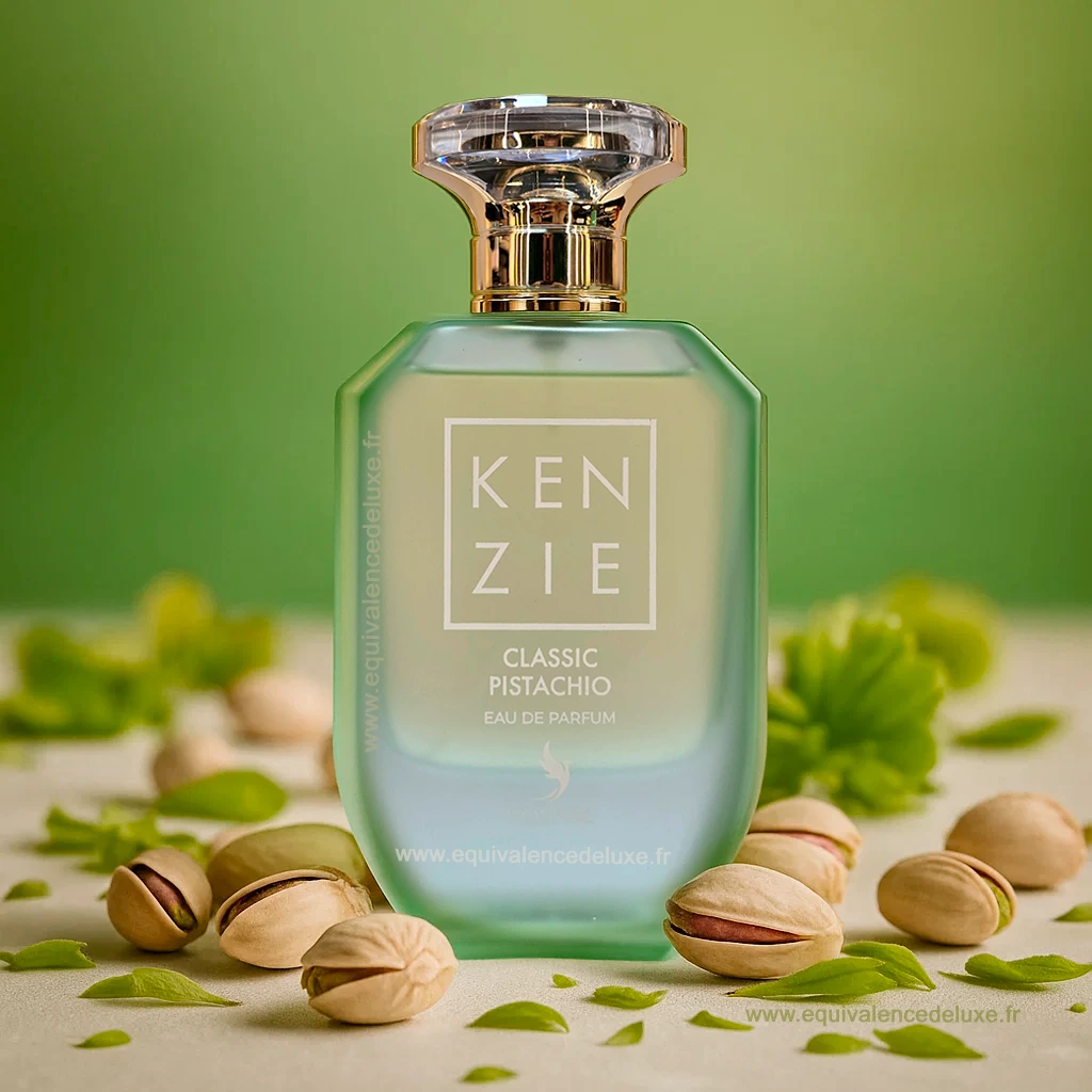 Affirmez votre style avec Kenzie Classic Pistachio, une eau de parfum mixte 100ml aux notes gourmandes de pistache, jasmin et vanille, disponible en livraison France, Europe & DOM-TOM.