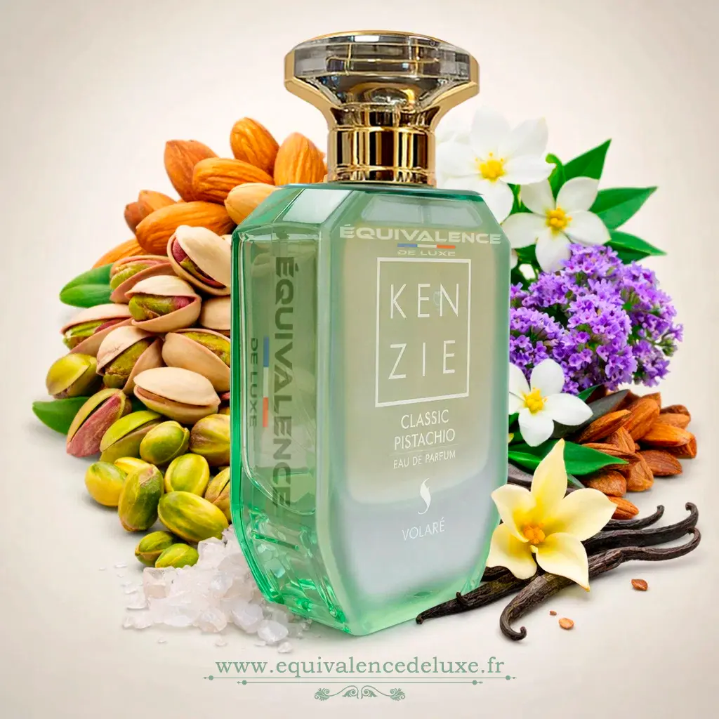 Kenzie Classic Pistachio est un parfum gourmand original qui met à l’honneur une note encore rare en parfumerie : la pistache. Très recherché actuellement dans les tendances parfum 2026, ce type de fragrance séduit par son côté à la fois sucré, doux et addictif.