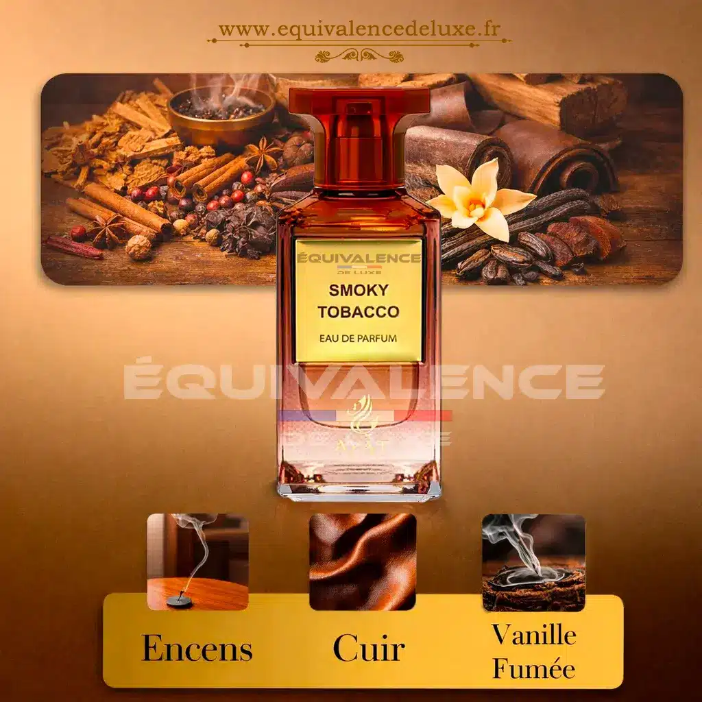 Découvrez le Parfum Smoky Tobacco, une fragrance envoûtante de caractère masculin, alliant tabac fumé, vanille boisée et sensualité orientale. Un parfum Dubaï pour homme à la signature olfactive puissante et élégante.