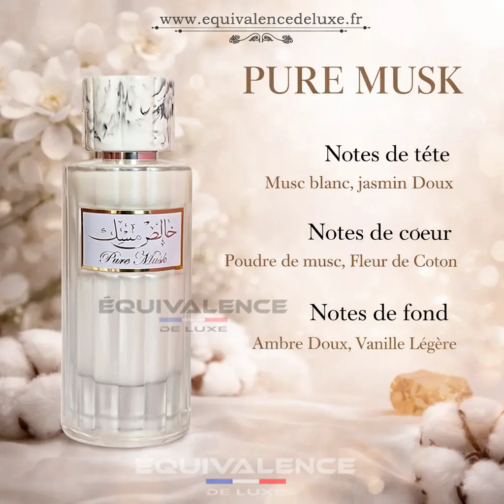 - Notes de tête : Musc blanc, jasmin doux