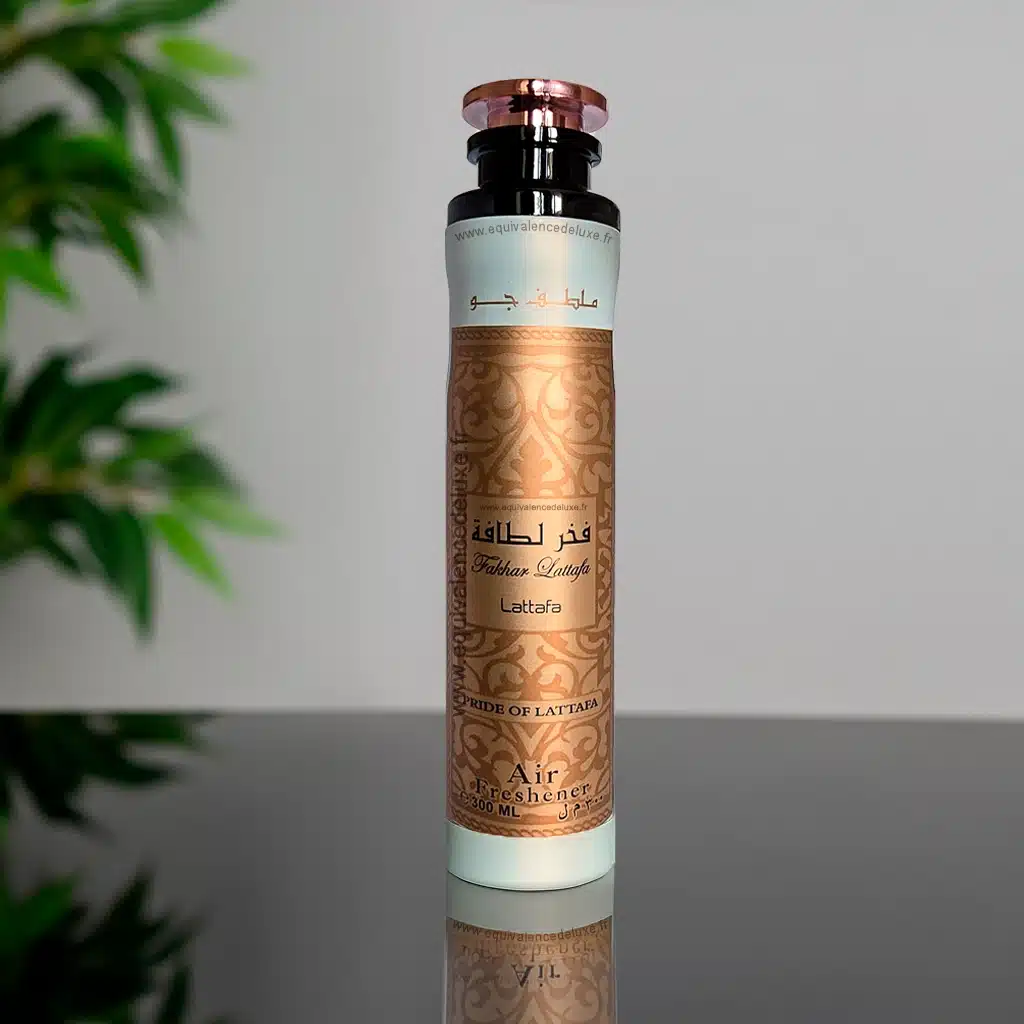 Fakhar Gold de Lattafa, un spray d’ambiance Dubai luxueux, aux notes florales et musquées. Sublimez votre intérieur avec une élégance orientale inoubliable. Sublimez votre intérieur avec le Désodorisant Fakhar Gold de Lattafa. Un air freshener oriental mixte au parfum floral, épicé et boisé. Élégance assurée dans chaque pièce. Format généreux 300 ml.